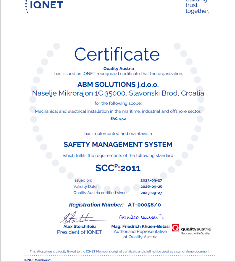 Naša stručnost potvrđena je posjedovanjem SCC certifikata i ISO 9001 standarda, što jamči
